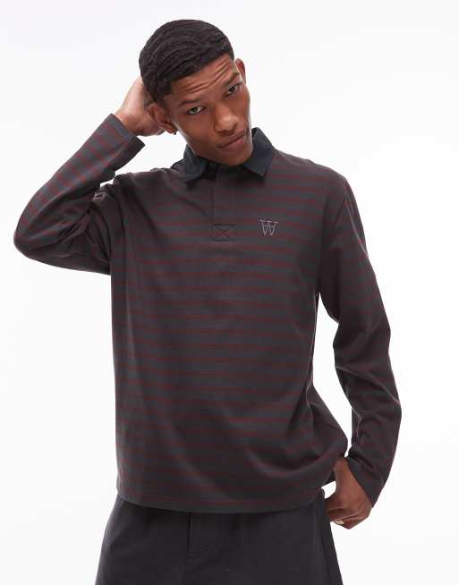 Double A By Wood Wood – Landon – Czarna koszulka polo w paski