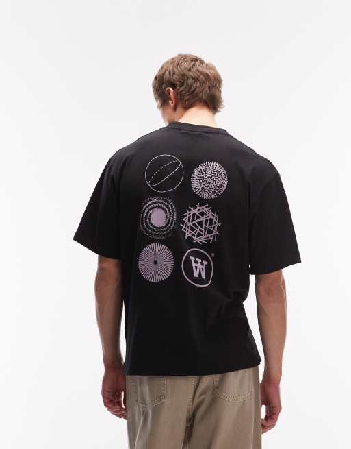 Double A By Wood Wood – Liam – Czarny T-shirt w paski z logo na plecach