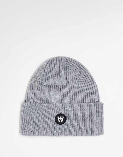 Double A By Wood Wood – Vin – Szara wełniana czapka beanie z logo