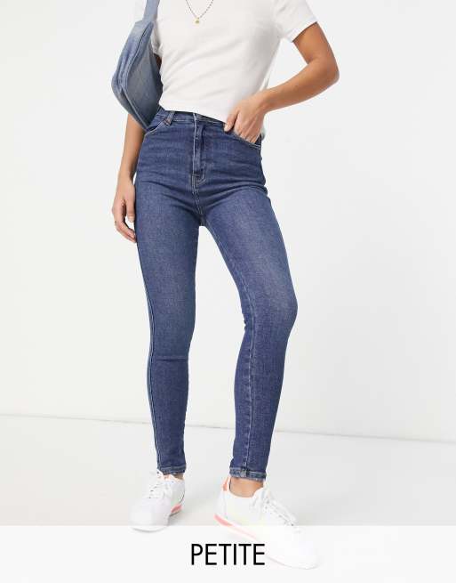 Dr Denim Petite – Moxy – Ciemnoniebieskie jeansy z bardzo wysokim stanem
