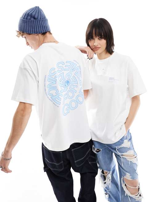 Dr Denim – Trooper – Biały luźny T-shirt unisex z grafiką z napisem „Good Times Since Forever” na plecach