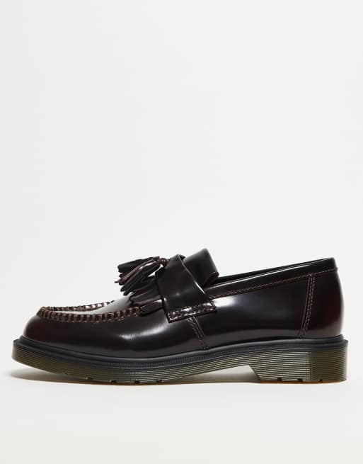 Dr. Martens – Adrian – Wiśniowe skórzane loafersy unisex z frędzlami