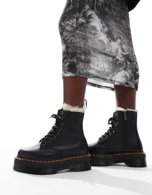 Dr Martens – Jadon – Czarne botki do kostek z 8 oczkami i podszewką z futerka