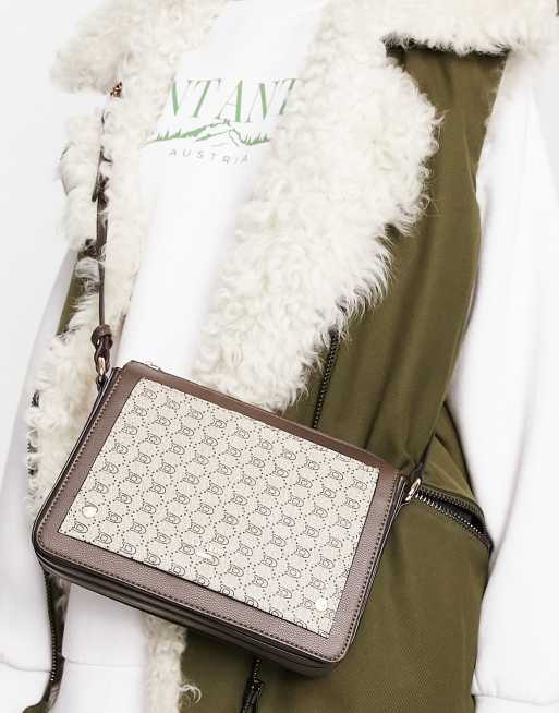 Dune – Brązowa żakardowa torebka crossbody z logo