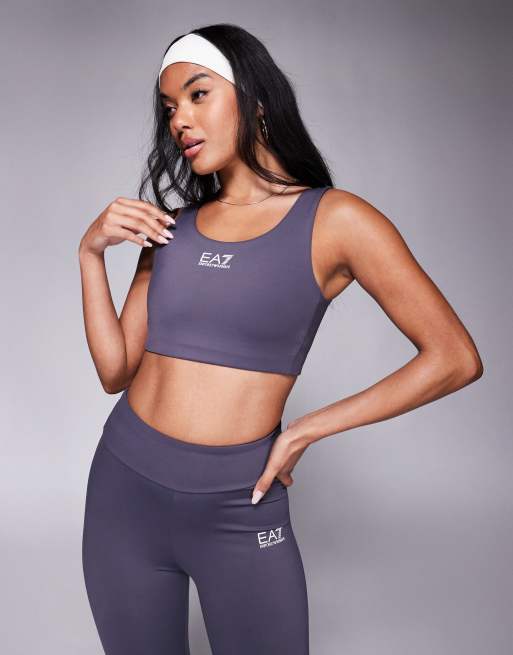 Armani – EA7 - Ciemnoszary biustonosz sportowy z logo. na środku, część zestawu