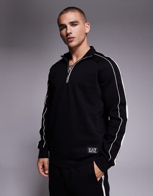 Armani – EA7 – Czarna bluza z lampasami i zapięciem na suwak pod szyją, część zestawu