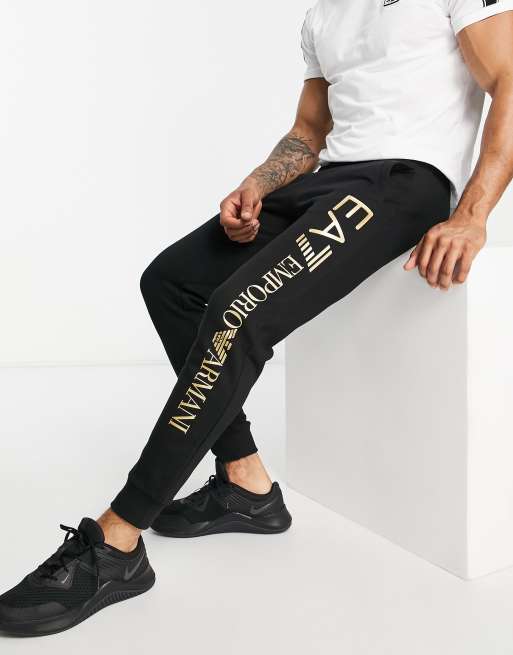 Armani – EA7 – Czarne joggersy z dużym złotym logo z boku