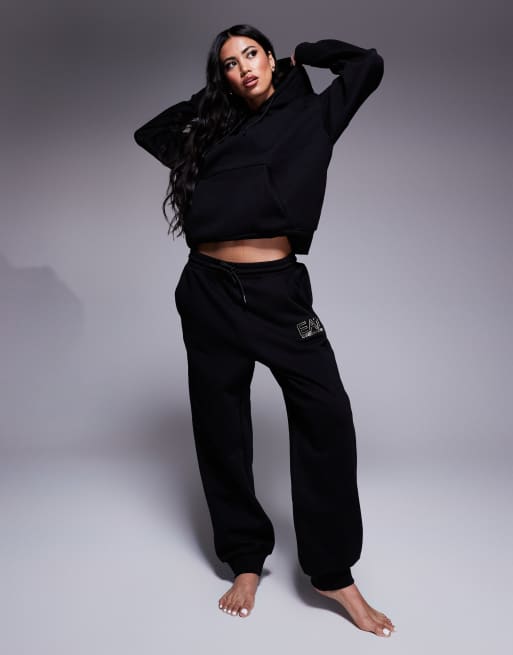Armani EA7 – Czarne joggersy ze złotym logo, część zestawu