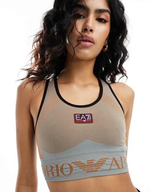 Armani – EA7 – Jasnoszary biustonosz sportowy z logo na środku i u dołu, część zestawu