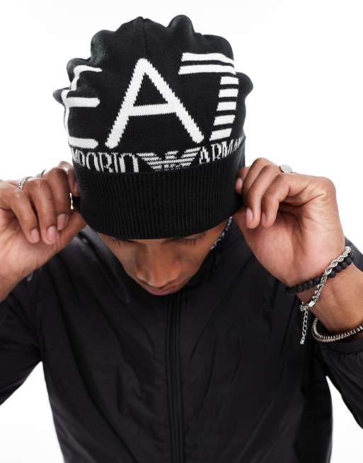 EA7 – Czarno-biała czapka beanie z logo