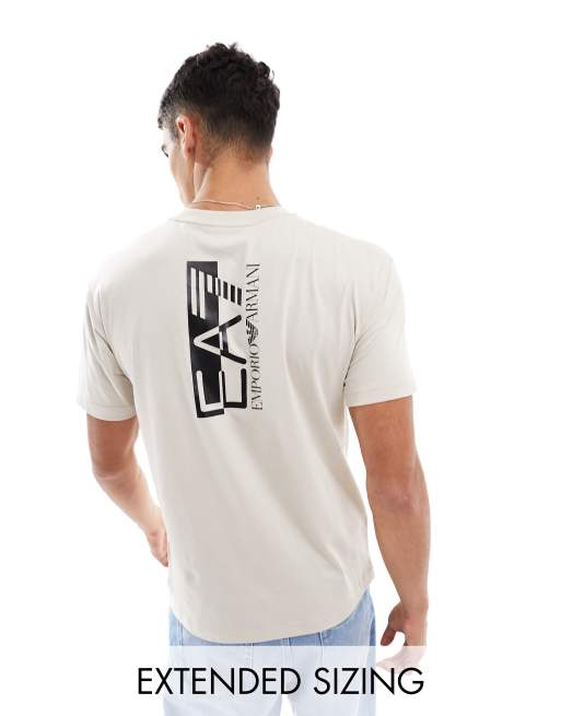 EA7 – Jasnobeżowy T-shirt z nadrukiem z logo na plecach