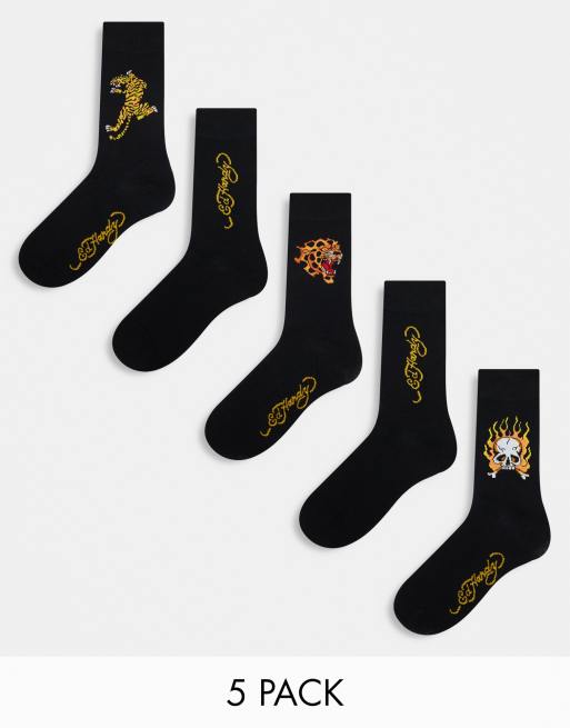 Ed Hardy – Arola – Zestaw 5 par czarnych skarpetek z tatuażowymi nadrukami