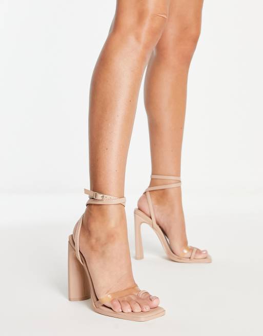 Ego – All In – Beżowe sandały z paseczkami na przezroczystym obcasie