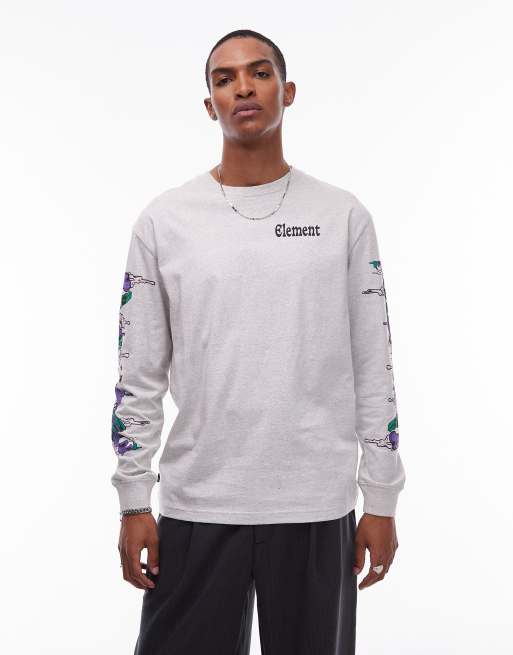 Element – Rolling – Jasnoszary T-shirt z długimi rękawami i nadrukiem z logo na plecach