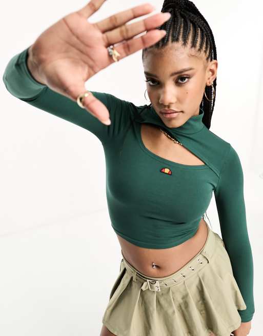 ellesse – Leilah – Ciemnozielony krótki T-shirt z długimi rękawami