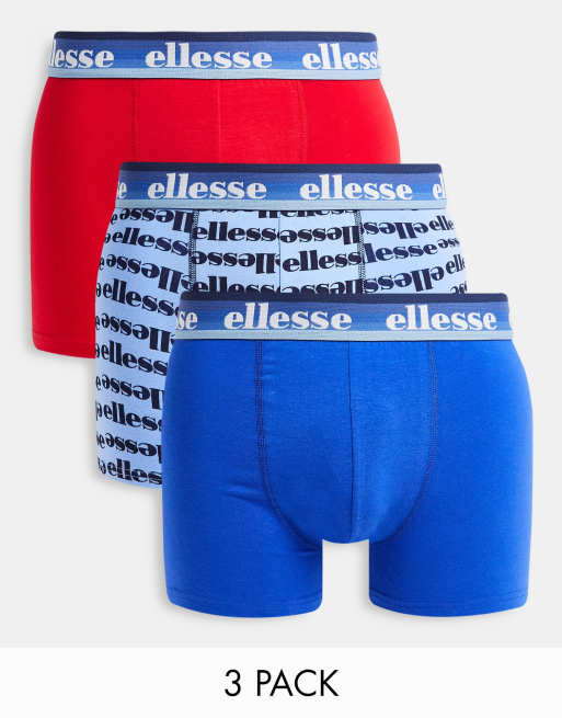 ellesse – Zestaw 3 par bokserek w kolorze czerwonym i niebieskim ze wzorem