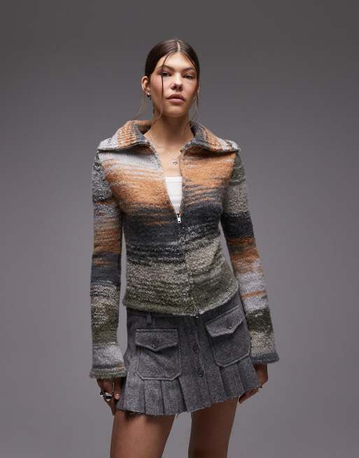 Emory Park – Zapinany na suwak kardigan z szerokim kołnierzem w oliwkowym odcieniu