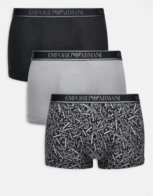 Emporio Armani – Zestaw 3 par czarnych bokserek ze wzorem i dużym logo