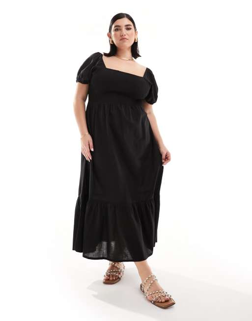Esmee Plus – Czarna sukienka midi z bufkami