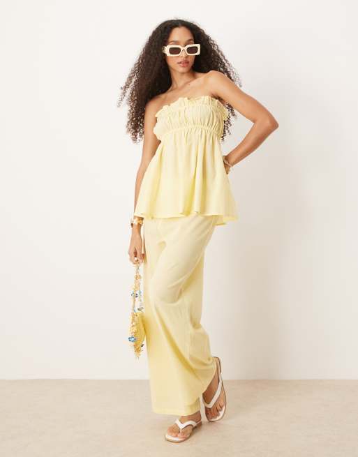 Esmée Exclusive – Maślanożółte spodnie o luźnym kroju z materiału z dodatkiem lnu