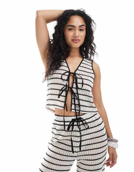 Esmée Exclusive – Wiązana z przodu dzianinowa kamizelka w czarno-białe paski