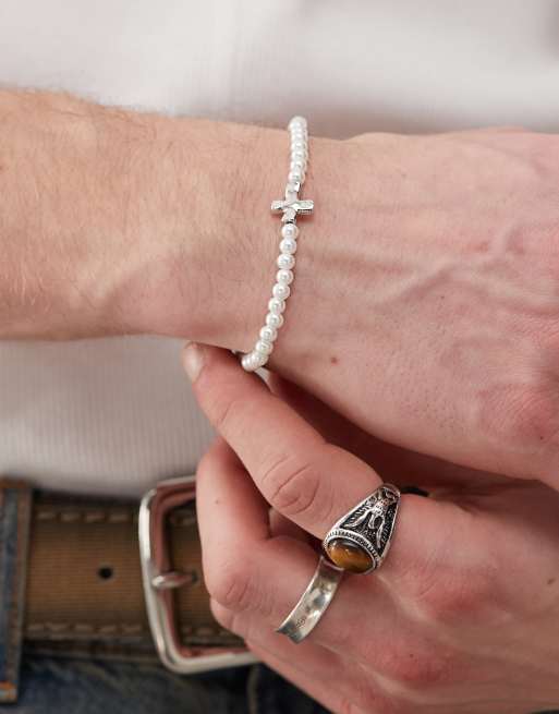 Faded Future – Bransoletka z perłami i zawieszką w kształcie krzyża w odcieniu srebra