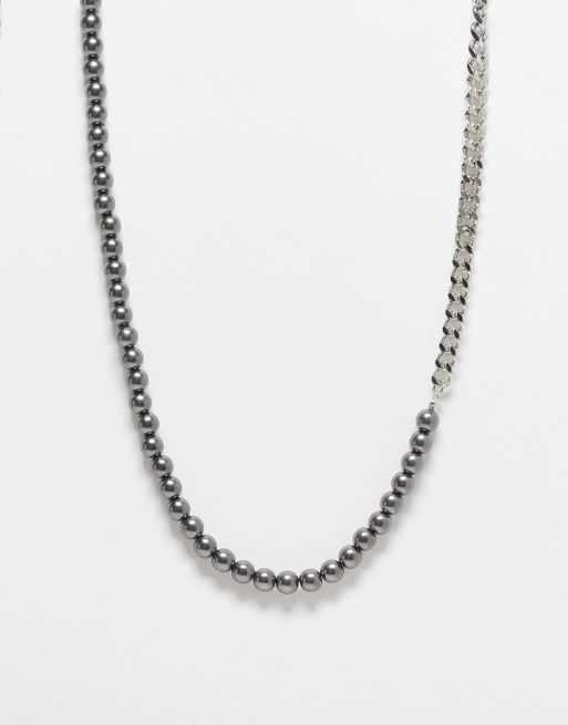 Faded Future – Naszyjnik łańcuszkowy w kolorze srebrnym z szarymi sztucznymi perłami