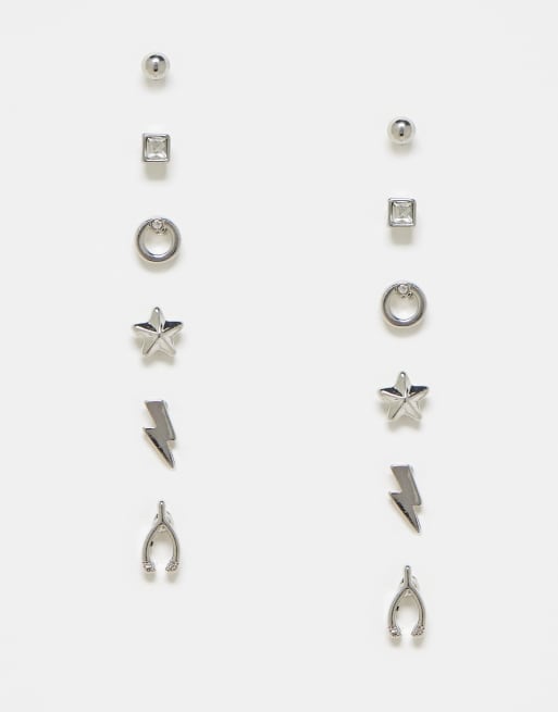 Faded Future – Zestaw 6 par kolczyków-wkrętek w srebrnym kolorze