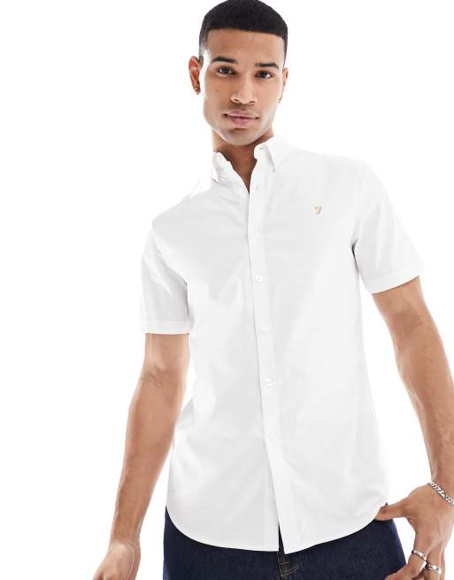 Farah – Brewer – Biała koszula z krótkimi rękawami
