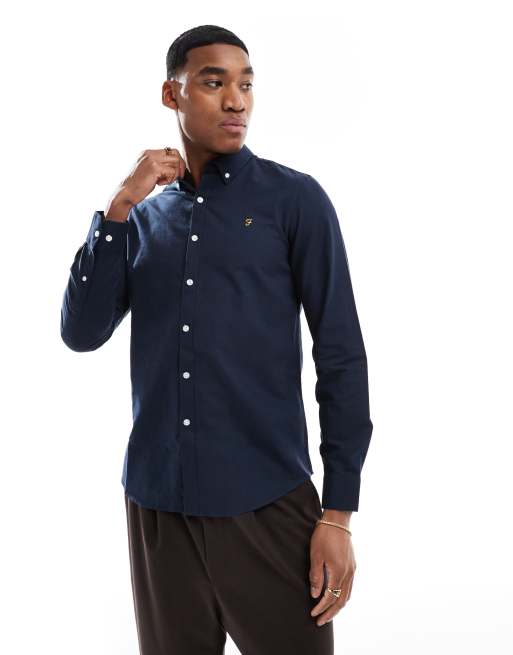 Farah Brewer – Granatowa koszula oxford o dopasowanym kroju z długimi rękawami