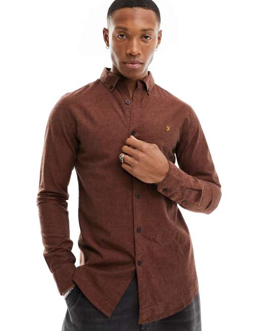 Farah – Steen – Dopasowana szczotkowana koszula w bordowym kolorze