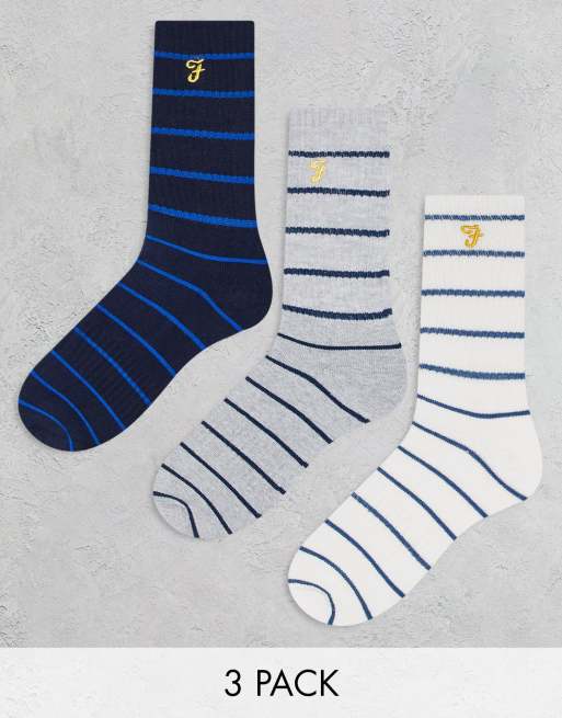 Farah – Zestaw 3 par skarpetek w kolorze czarnym, białym i szarym w paski
