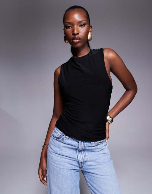 Fashionkilla – Czarny modelujący top z odkrytymi plecami i drapowaniem