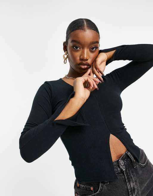 Fashionkilla – Czarny prążkowany top z dekoltem w szpic