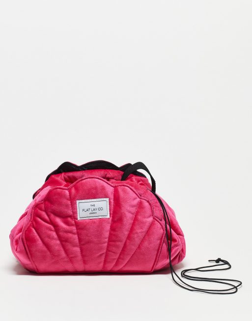 The Flat Lay Co. x ASOS Exclusive – Różowa aksamitna kosmetyczka ściągana na sznurek