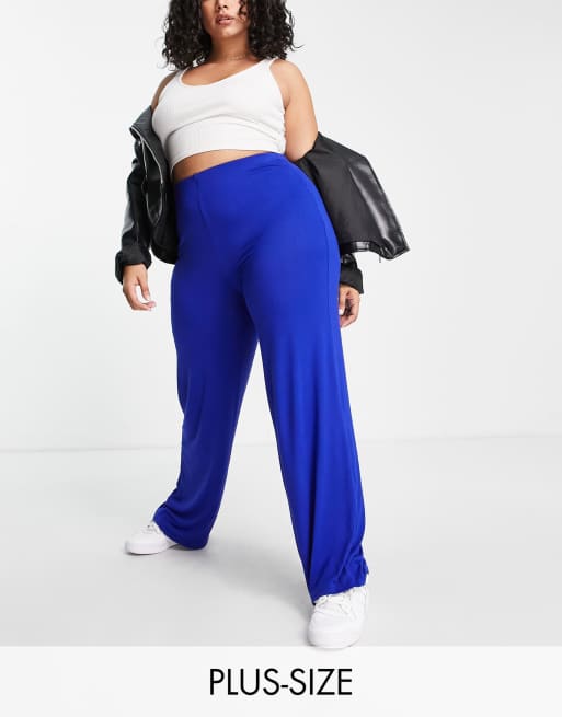 Flounce London Plus – Kobaltowe spodnie z podwyższonym stanem i szerokimi nogawkami