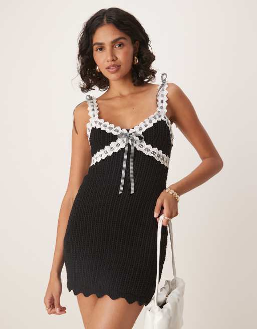 For Love & Lemons – Becka – Czarna sukienka mini z ozdobnymi wstążeczkami