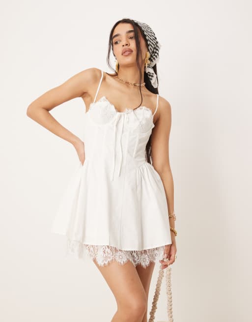 For Love & Lemons – Shae – Biała sukienka mini z koronkowymi detalami