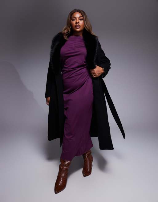 Forever New Curve – Czarny płaszcz z kołnierzem ze sztucznego futra