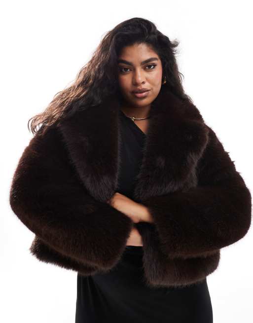 Forever New Curve – Czekoladowobrązowy płaszcz ze sztucznym futrem
