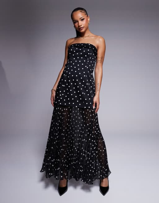 Forever New Petite – Czarna plisowana sukienka midaxi w groszki