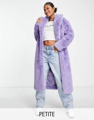 Forever New Petite – Fioletowy płaszcz oversize midi ze sztucznego futerka
