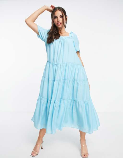 Forever New – Błękitna warstwowa sukienka midi o luźnym kroju z obszernymi rękawami