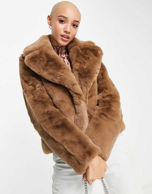 Forever New – Brązowy płaszcz z kołnierzem ze sztucznego futra