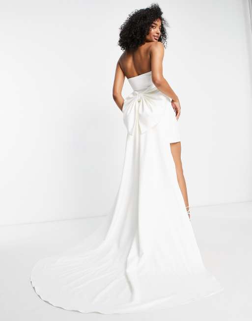 Forever New Bridal – Sukienka mini bez ramiączek w kolorze kości słoniowej z kokardą i trenem