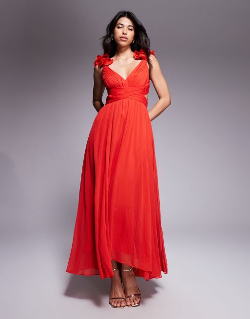 Forever New – Czerwona sukienka midaxi z falbankami na ramionach