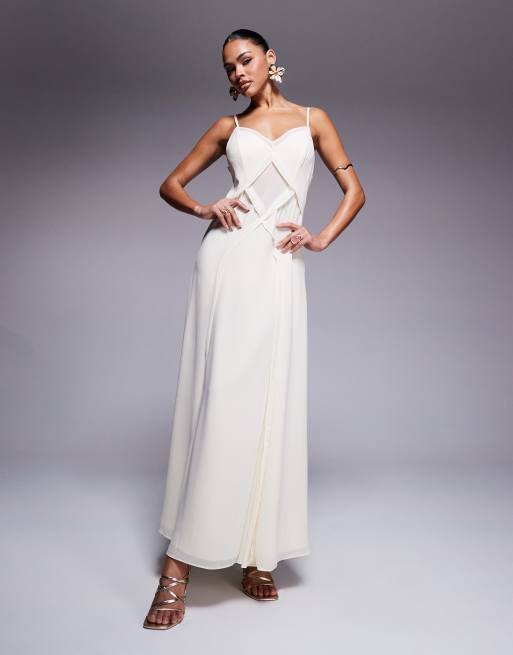 Forever New – Kremowa sukienka maxi ze skrzyżowanymi detalami i godetami