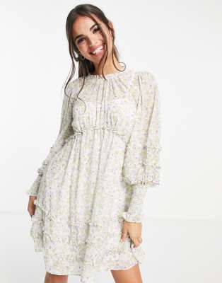 Forever New – Liliowa marszczona sukienka z falbanką i wzorem w łapacze snów