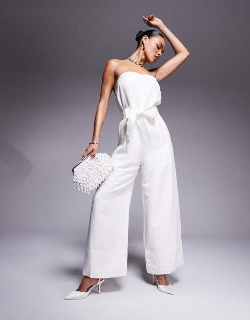 Forever New – Porcelanowy wiązany w talii kombinezon bez rękawów z szerokimi nogawkami