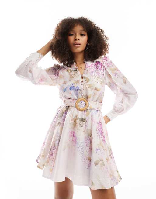 Forever New – Sukienka mini z paskiem w liliowo-różowy kwiatowy wzór